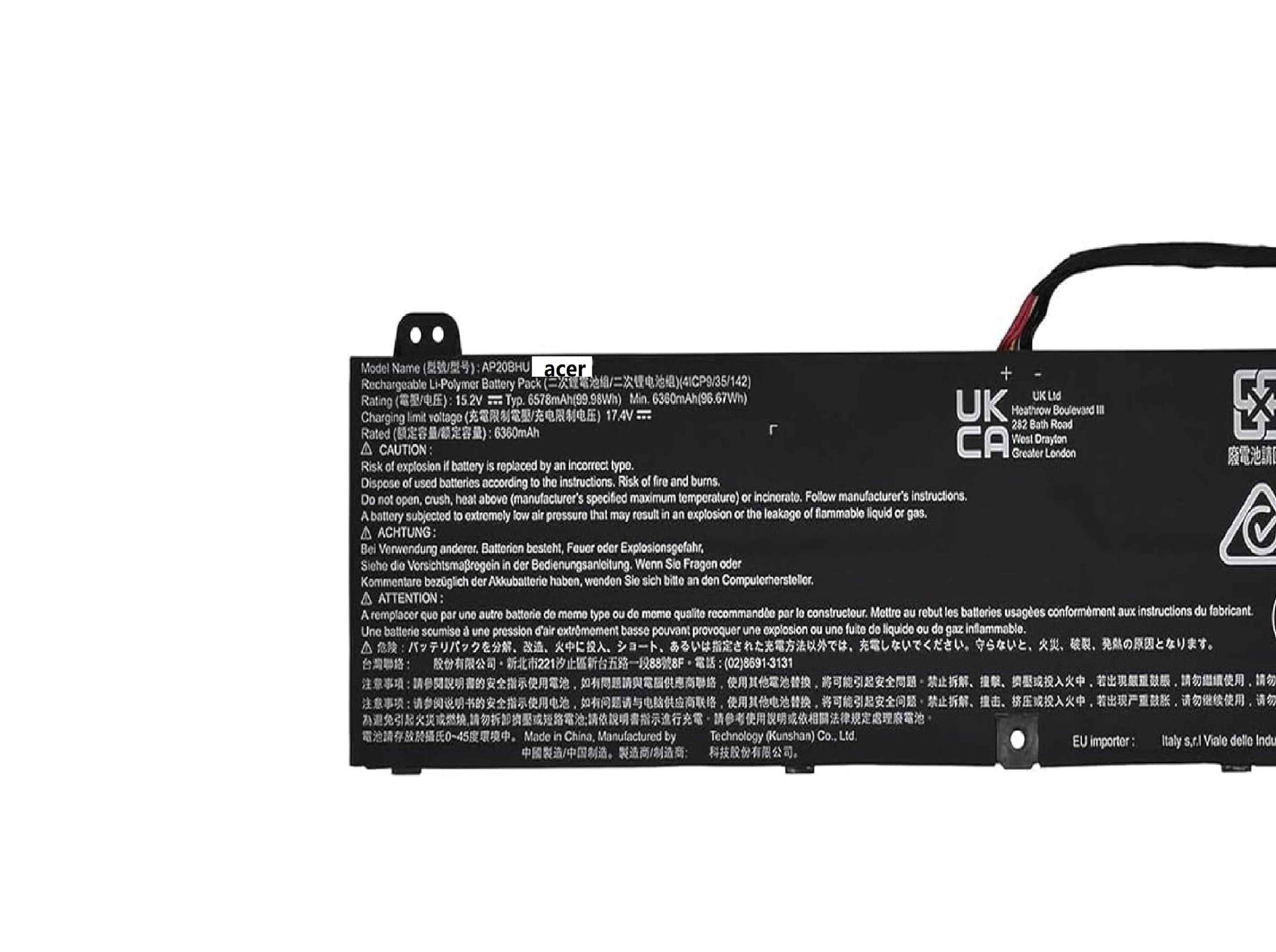 We offer the best price for AP20BHU Original Laptop Battery 99.98Wh 15.2V Compatible with Acer Predator Triton 500 SE 16" PT516-51S PT516-51S-70TP PT516-51S-96BX PT516-51S-92CB Series 4ICP9/35/142 4ICP8/36/142 in UAE.
