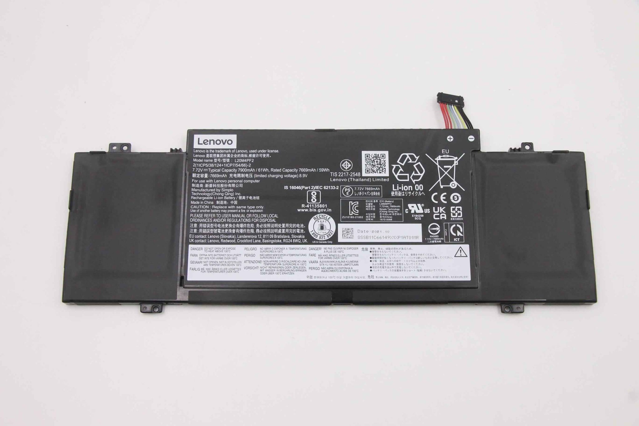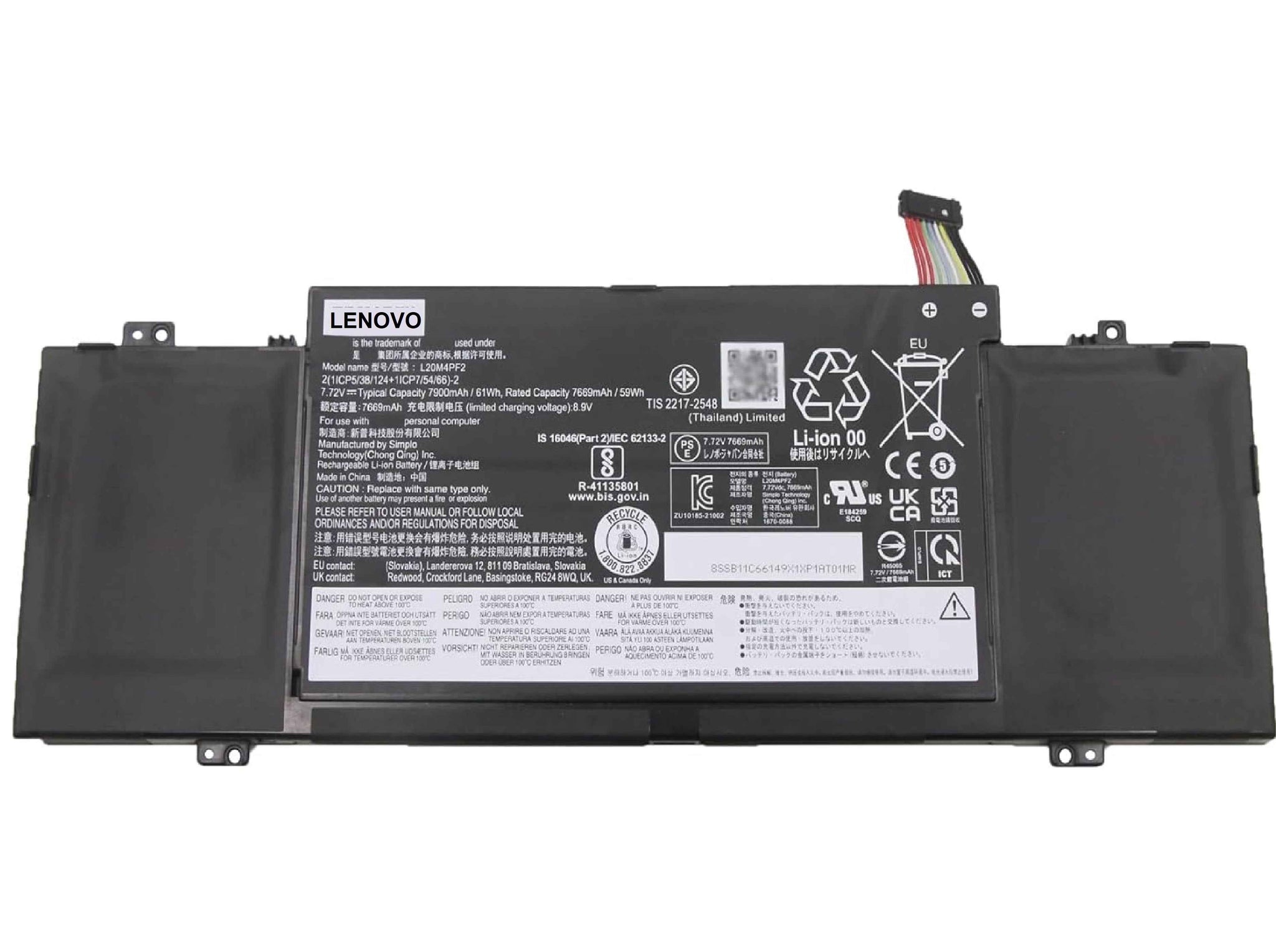 We offer the best price for L20M4PF2 Original Laptop Battery 61Wh 7900mAh 4-Cell 7.72V Compatible with Lenovo IdeaPad Yoga Slim 7 Carbon-14ACN06 / IdeaPad Slim 7 Carbon-14ACN06 Series L20D4PF2 L20C4PF2 in UAE.