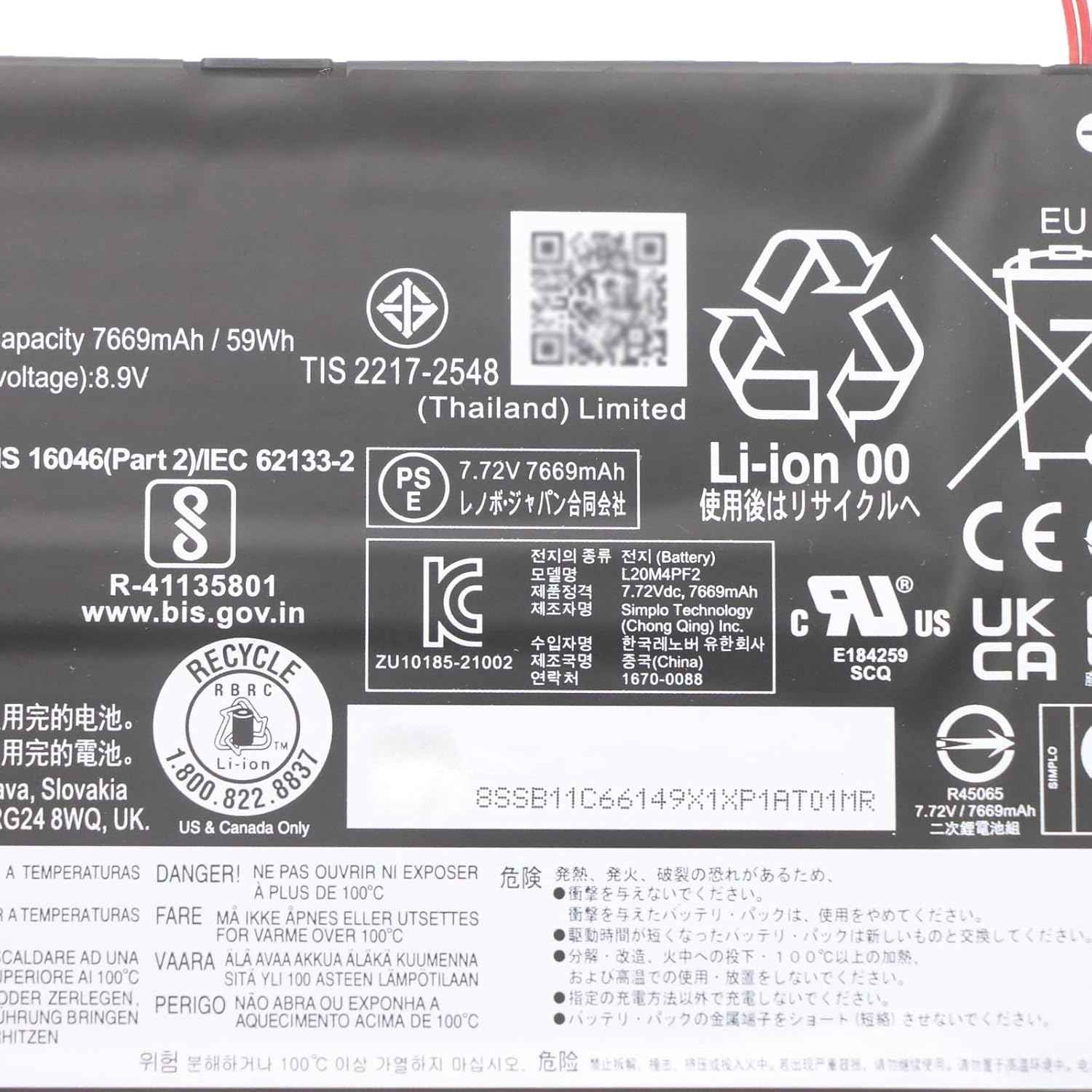 L20M4PF2 Original Laptop Battery 61Wh 7900mAh 4-Cell 7.72V Compatible with Lenovo IdeaPad Yoga Slim 7 Carbon-14ACN06 / IdeaPad Slim 7 Carbon-14ACN06 Series L20D4PF2 L20C4PF2