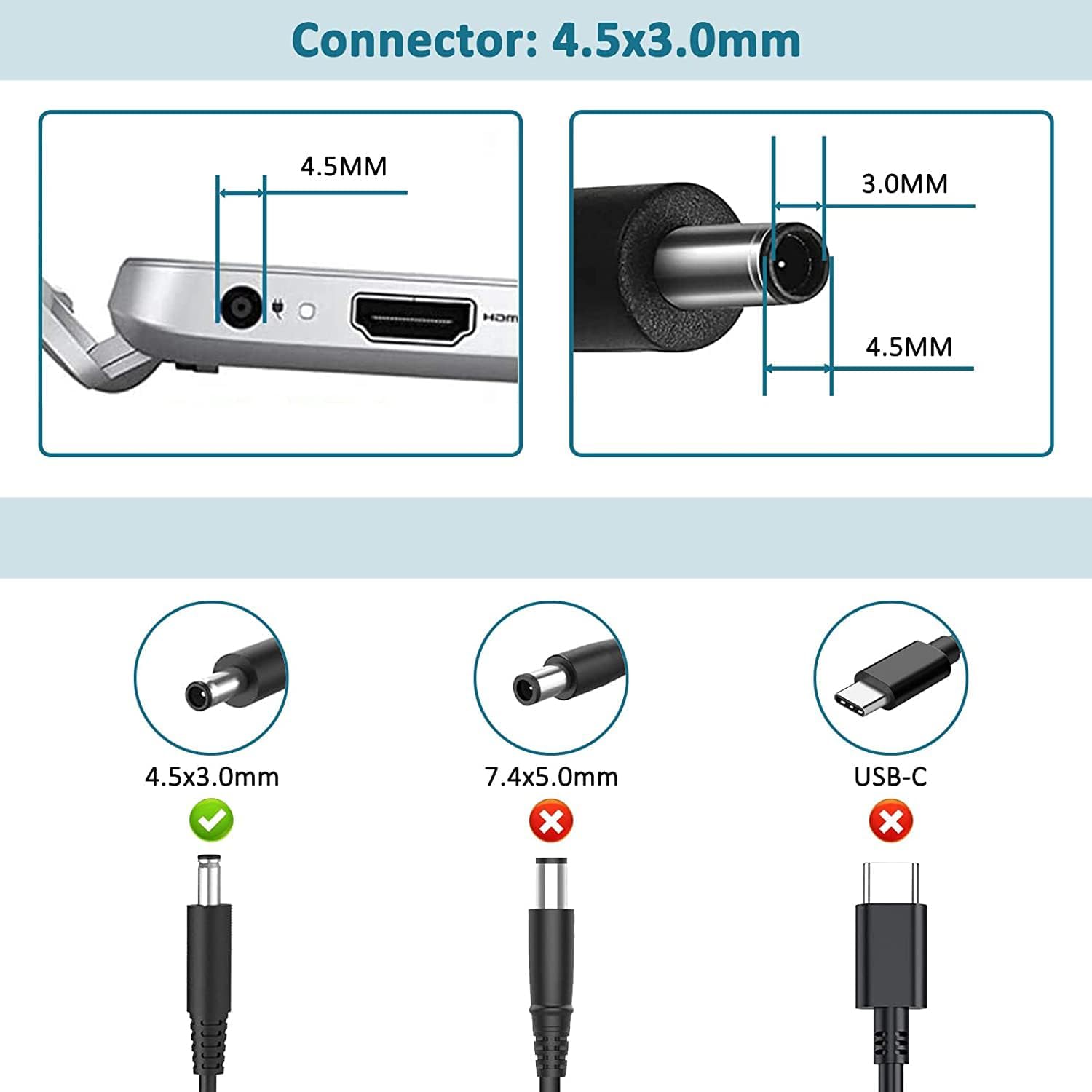 • Connector: 4.5mm*3.0mm