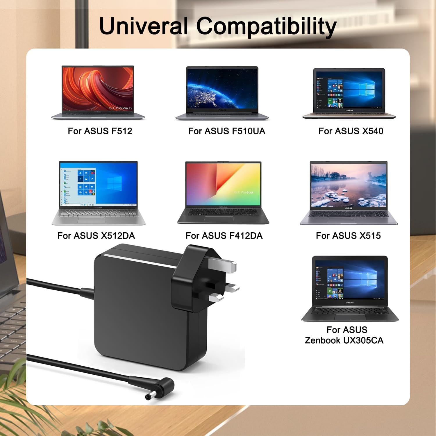 65W Asus Laptop Charger for Asus VivoBook 14 F412FA-EB134T, A405UA, TP412FA-EC117T, UX52VS Series
